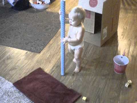 This is by far one of the most hilarious videos I have seen. From falling down to suddenly getting back up like it's no big deal to wondering what the appeal is to yelling down a wrapping paper tube to seeing that cute little belly with a diaper struggling to stay on to kicking a football. It's fun. My little girl is amazing!!!